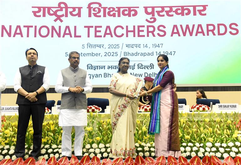 The President of India, Smt Droupadi Murmu, conferred National Awards on teachers from across the country at a function held in New Delhi today (September 5, 2025) on Teachers’ Day.