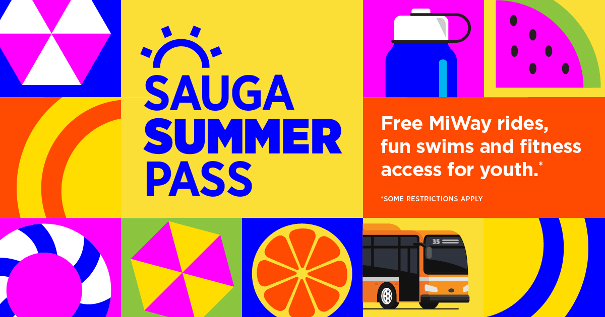 Make the summer months easier on your wallet with a pass that provides Mississauga youth ages 12 to 16 with access to free MiWay bus rides and public fun swims at all City indoor and outdoor pools. The pass also offers free fitness centre access for youth ages 14 to 16 at all participating locations with parental consent.